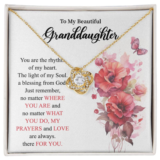 To My Beautiful Granddaughter Necklace from Grandma - Cute Message Card Love Knot Necklaces for Granddaughter Birthday Anniversary Presents from Grandparents